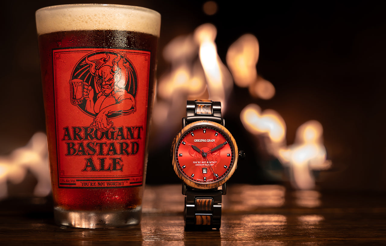 Inspired by Arrogant Bastard Ale, the Arrogant Automatic timepiece is limited to 250 units. Featuring charred oak from beer barrels, a brash red dial, and an automatic movement, this watch is built for the most hardcore craft beer aficionados.