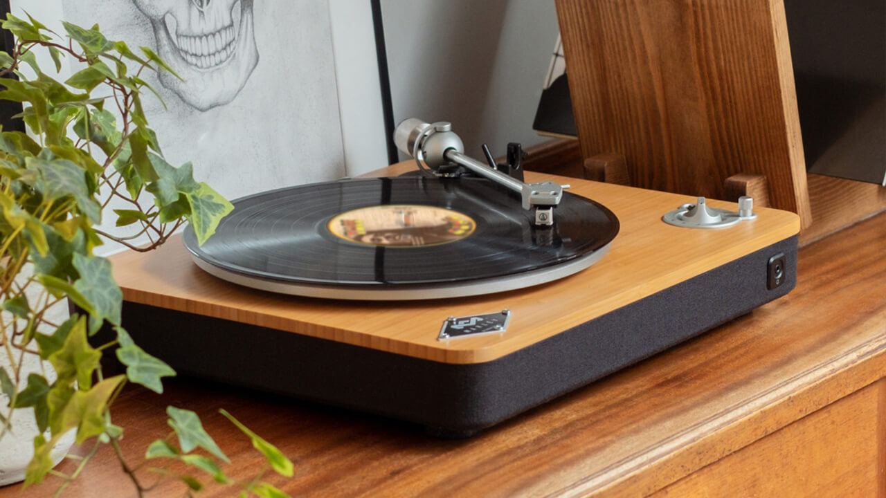 The Stir It Up Wireless Turntable by House of Marley has a sleek design and is made of solid bamboo, REGRIND™ silicone, REWIND™ fabric, recycled plastic, and recyclable aluminum. Enjoy a classic sound system that connects to any Bluetooth® speaker and offers a built-in switch pre-amp allowing seamless compatibility with your speakers.