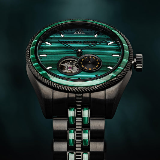 Using natural materials like Exotic Burlwood & Ancient Malachite Gemstone, and our favorite reclaimed material: Whiskey Barrel Wood, there's something for every rugged & refined gentleman in this collection. Choose one today: