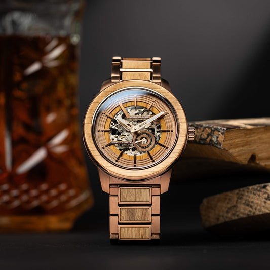 Good whiskey creates good times. So, we crafted a collection of watches from whiskey barrel wood to celebrate the time spent sharing a drink with your tribe.