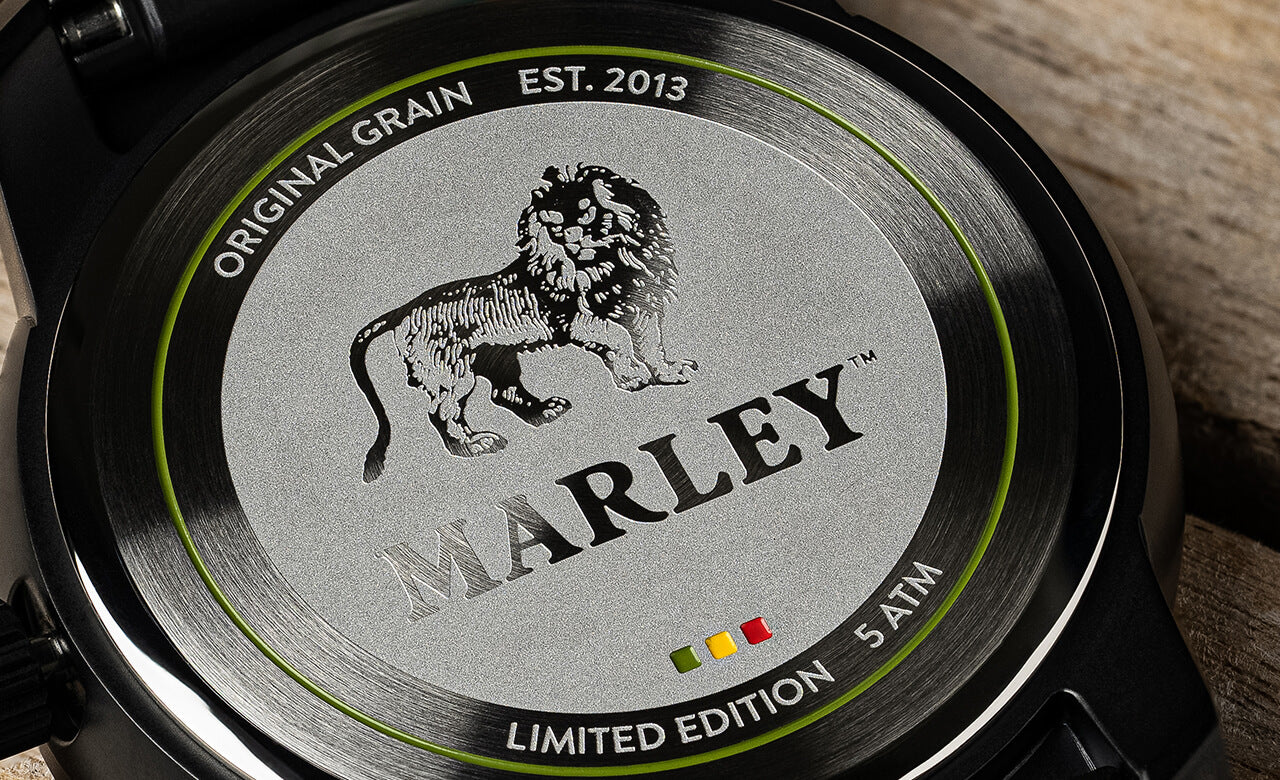 A custom molded EXODUS logo is featured prominently on the center of the dial as a nod to the iconic album and the legend himself, Bob Marley.