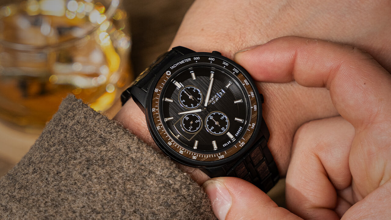 Soaked equally in tradition and world-class whiskey, Kentucky Bourbon Barrels make for an entirely unique and truly distinctive wood source. Aged to perfection and imbued with character, the bourbon leaves behind spirits-soaked wood that once reclaimed makes for an amazing timepiece.
