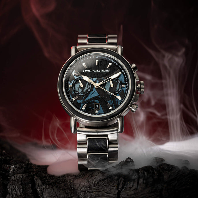 Made with reclaimed forest fire wood, this watch was designed to bring awareness to the reality of forest fires happening throughout the U.S.and globally. Many fires can be prevented through wildfire safety, This collection is to raise awareness around global climate change and fire prevention