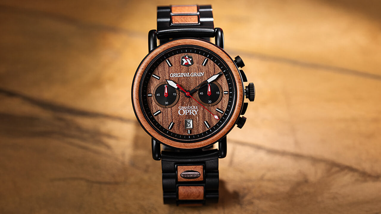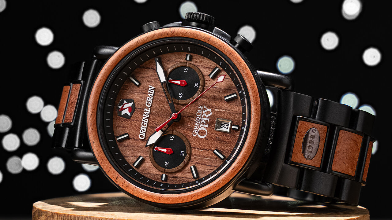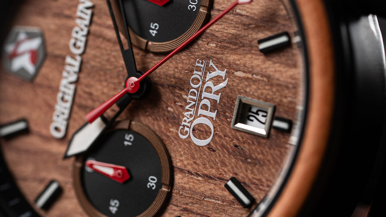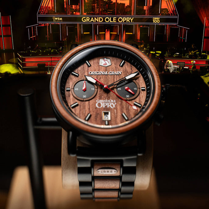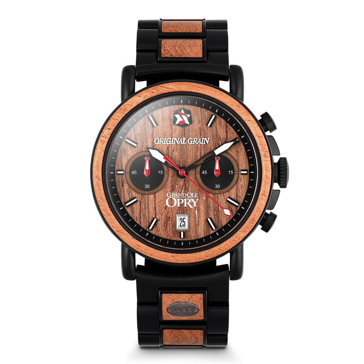 Inlaid with authentic Opry Stage Floorboards, this Chronograph carries the history of country music legends in every grain. Powered by a hyper-accurate quartz chronograph movement, this watch never misses a beat, and is always versatile, just like the legendary musicians who grace The Grand Ole Opry’s iconic stage.