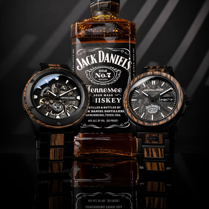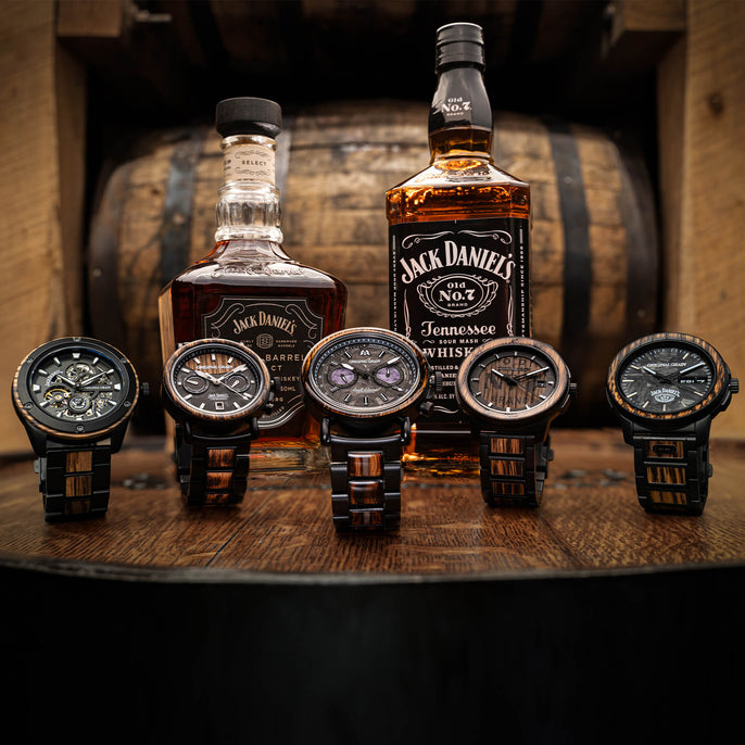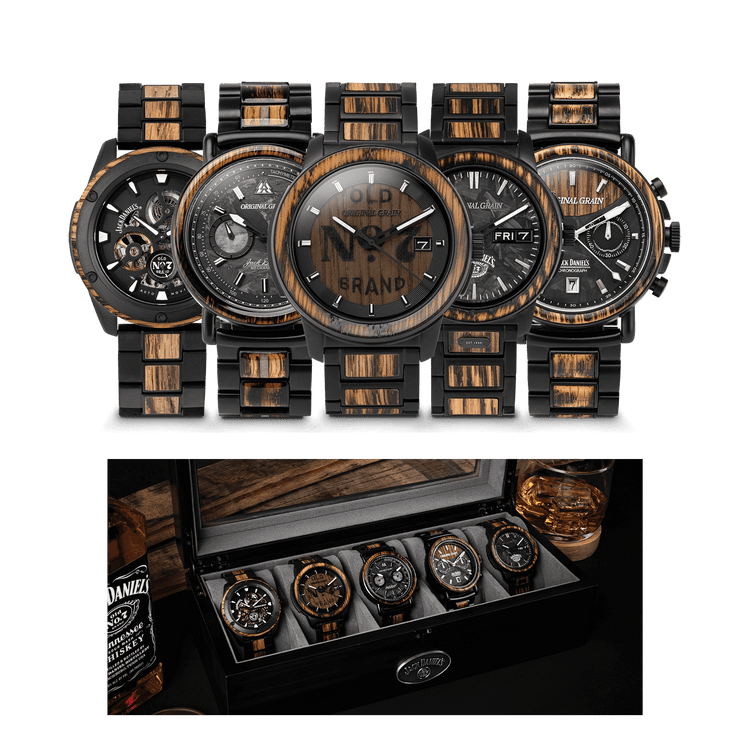 You get all 5 of our officially licensed Jack Daniel's watches made with reclaimed whiskey barrels straight from the distillery. As well as the collector's box to hold your new timepieces.