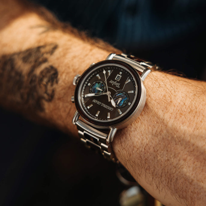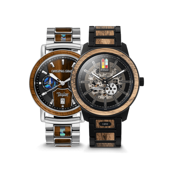 Introducing the Music Heritage Bundle — featuring two legendary collaborations that celebrate the soul of American music. This exclusive set includes our best-selling timepieces from our Taylor Guitars Collection and Ryman Auditorium Collection and an exclusive 3-Watch Ryman Auditorium Display.