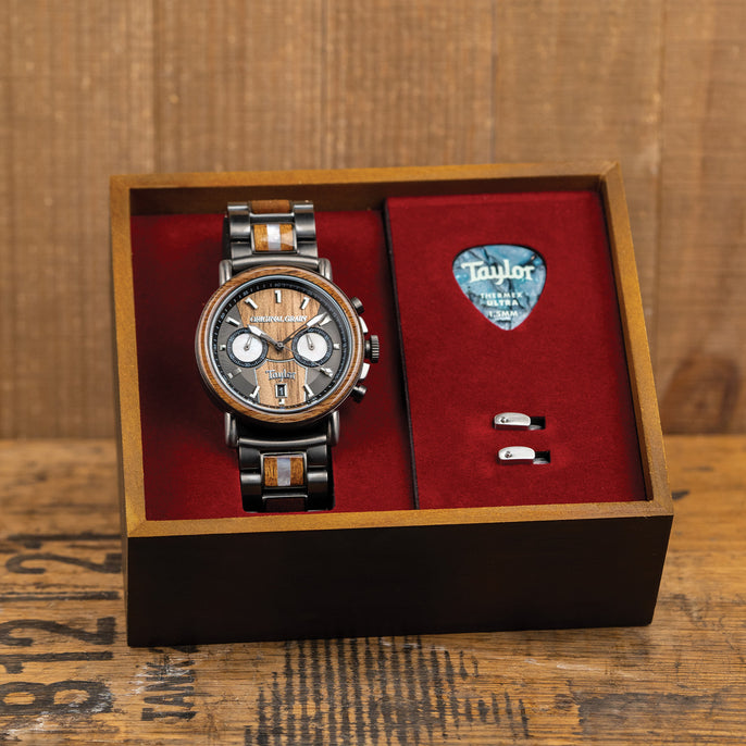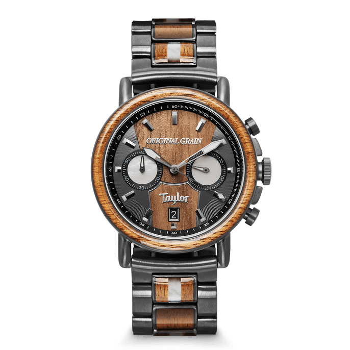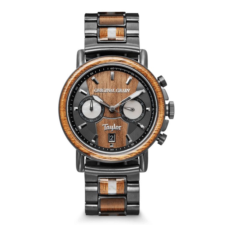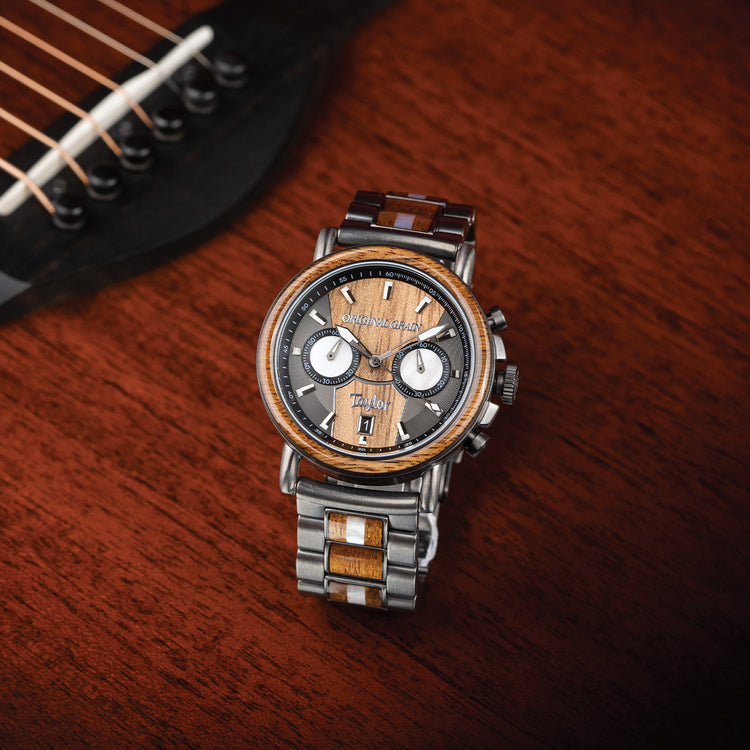 Original Grain and Taylor Guitars are coming together, to bring you San Diego craftsmanship at its finest with a limited edition collection of watches made with reclaimed Urban Ash and Ironbark, Hawaiian Koa, and Cameroon Ebony woods, left over from Taylor’s manufacturing process. This limited series has created one of a kind timepieces that will be cherished forever.