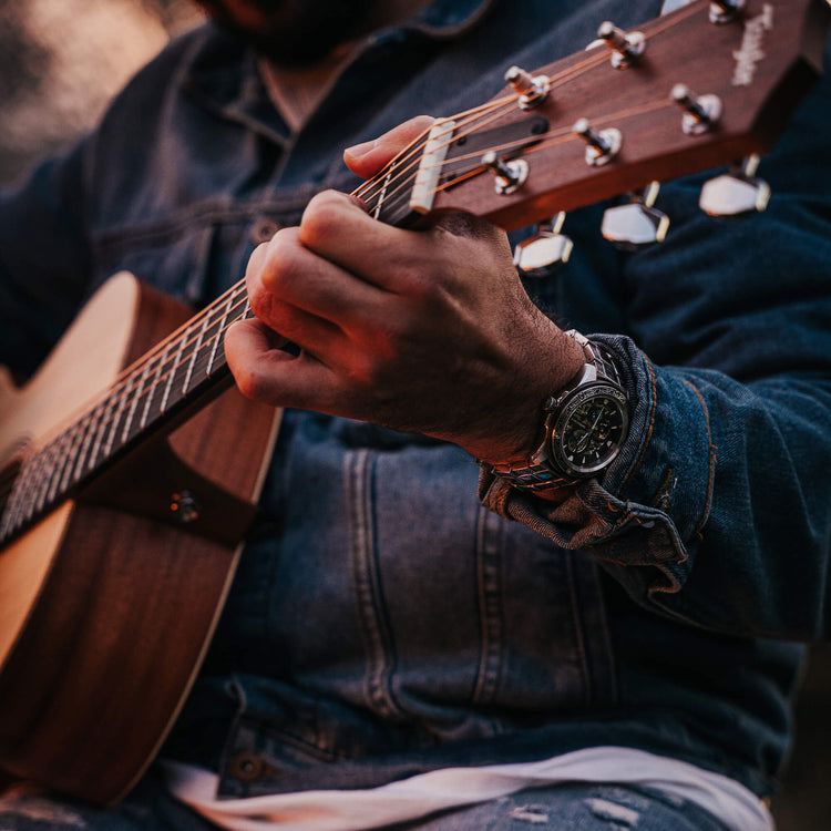 Proceeds from this timepiece are donated to Guitars 4 Vets, an organization that provides music lessons & instruments to US combat Veterans.