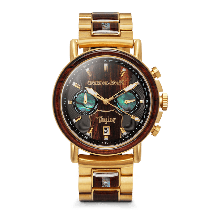 Fill the input to continueOriginal Grain and Taylor Guitars are coming together, to bring you San Diego craftsmanship at its finest with a limited edition collection of watches made with reclaimed Urban Ash and Ironbark, Hawaiian Koa, and Cameroon Ebony woods, left over from Taylor’s manufacturing process. This limited series has created one of a kind timepieces that will be cherished forever.