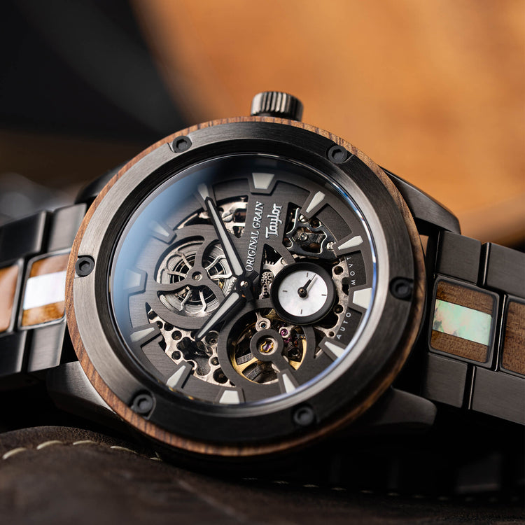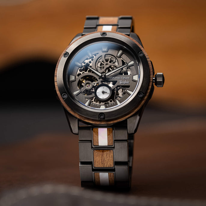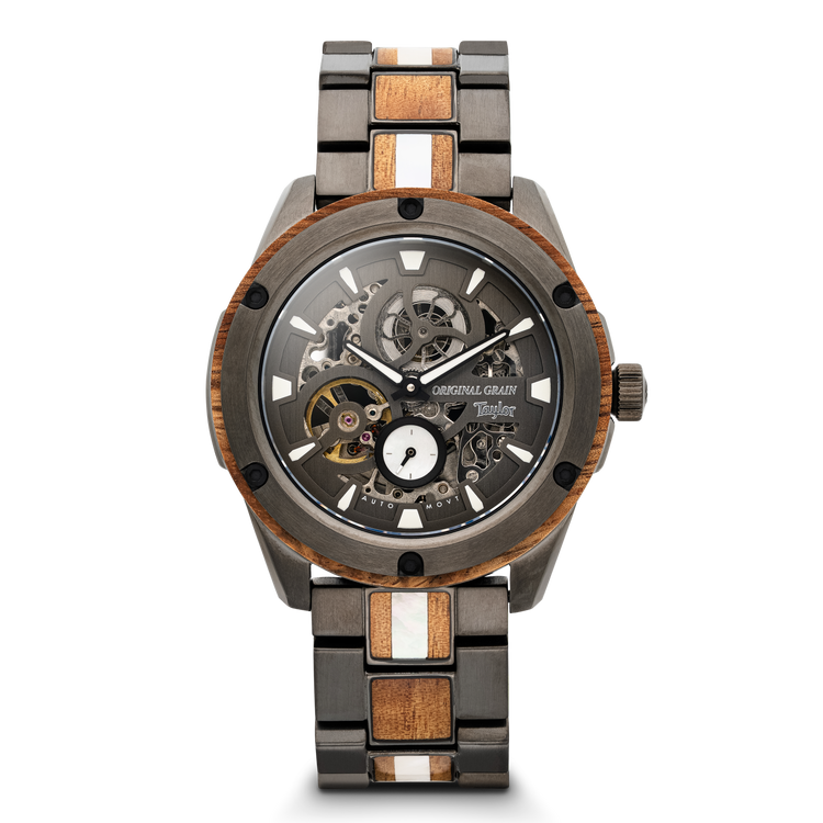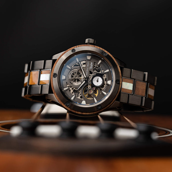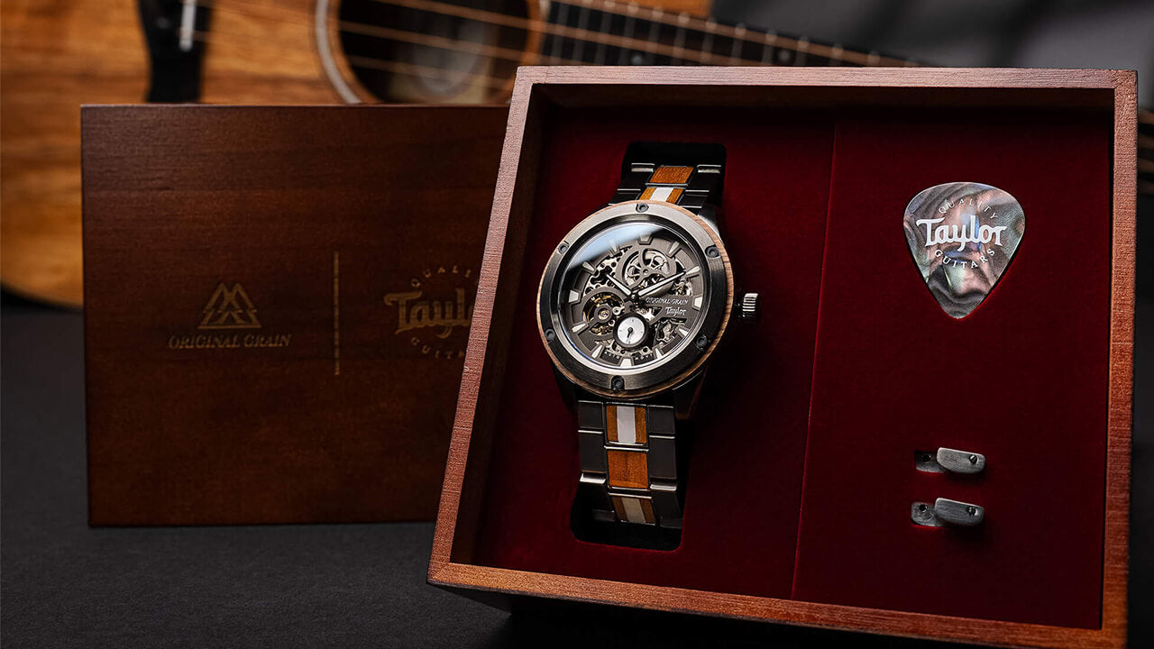 Original Grain and Taylor Guitars are coming together, to bring you San Diego craftsmanship at its finest with a limited edition collection of watches made with reclaimed Urban Ash and Ironbark, Hawaiian Koa, and Cameroon Ebony woods, left over from Taylor’s manufacturing process. This limited series has created one of a kind timepieces that will be cherished forever.