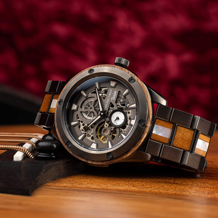 Fill the input to continueOriginal Grain and Taylor Guitars are coming together, to bring you San Diego craftsmanship at its finest with a limited edition collection of watches made with reclaimed Urban Ash and Ironbark, Hawaiian Koa, and Cameroon Ebony woods, left over from Taylor’s manufacturing process. This limited series has created one of a kind timepieces that will be cherished forever.