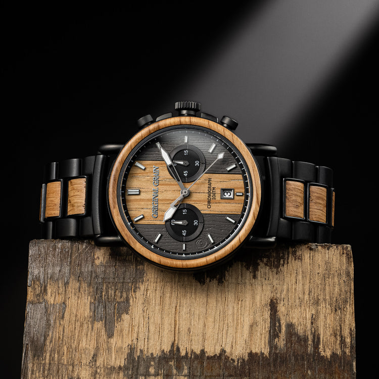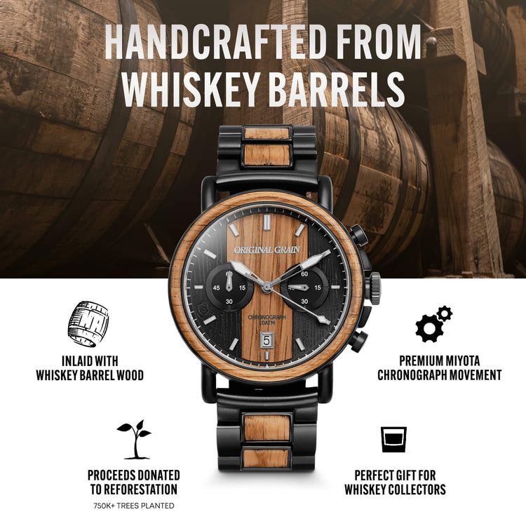 Soaked equally in tradition and world-class whiskey, Kentucky Bourbon Barrels make for an entirely unique and truly distinctive wood source. Aged to perfection and imbued with character, the bourbon leaves behind spirits-soaked wood that once reclaimed makes for an amazing timepiece.