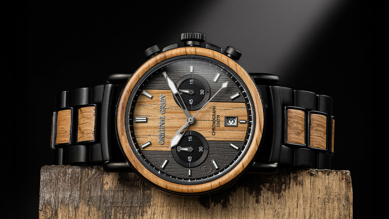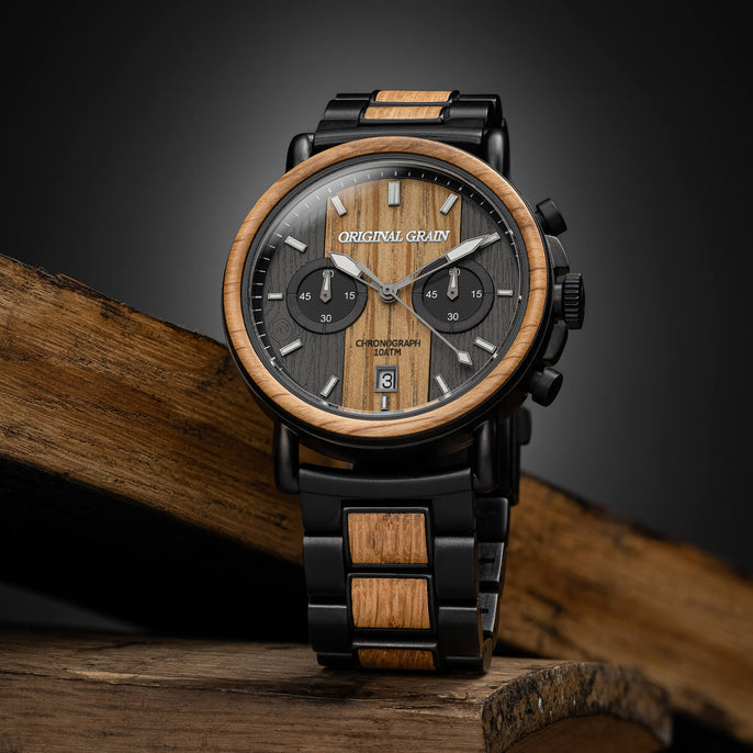Dial Type: Black Steel Dial with Inlaid Wood